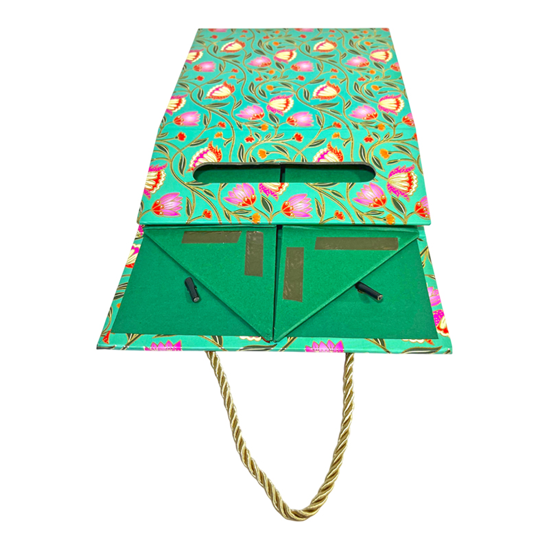 This foldable gift box is designed for both elegance and practicality. Its collapsible structure allows easy storage and assembly, while the sturdy built-in handle ensures comfortable carrying. Made from high-quality rigid board, it offers a premium look and durable performance.